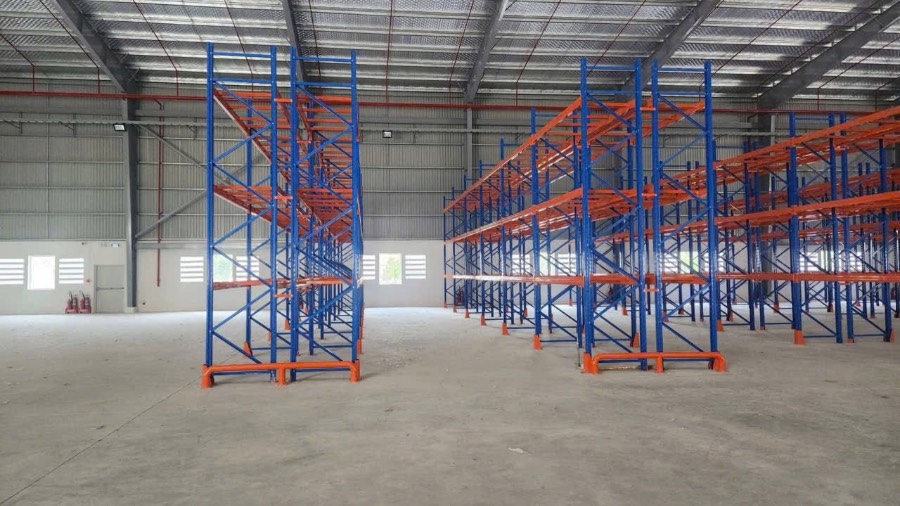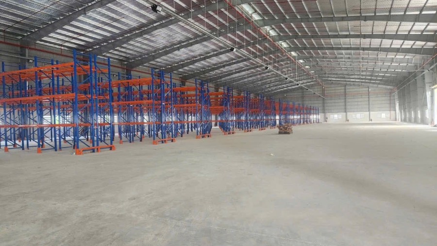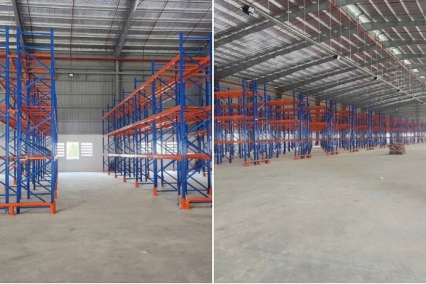 _* Đã ráp sẵn kệ hàng 4 tầng mới đẹp, chiếm 40% diện tích kho, nếu khách không có nhu cầu, chủ đầu tư có thể tháo dỡ.